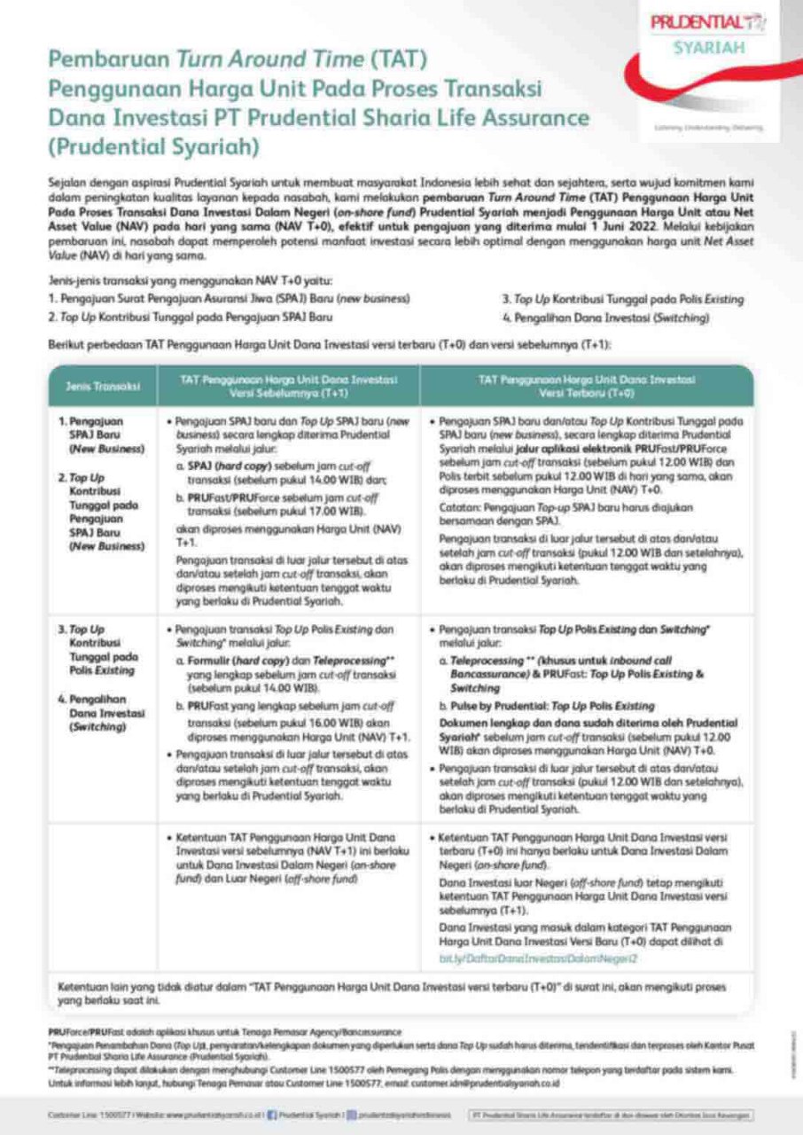 Informasi Pembaruan Turn Around Time (TAT) T+0 Penggunaan Unit Pada Proses Transaksi Dana Investasi Syariah