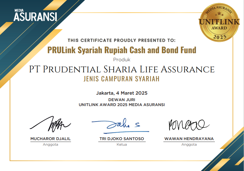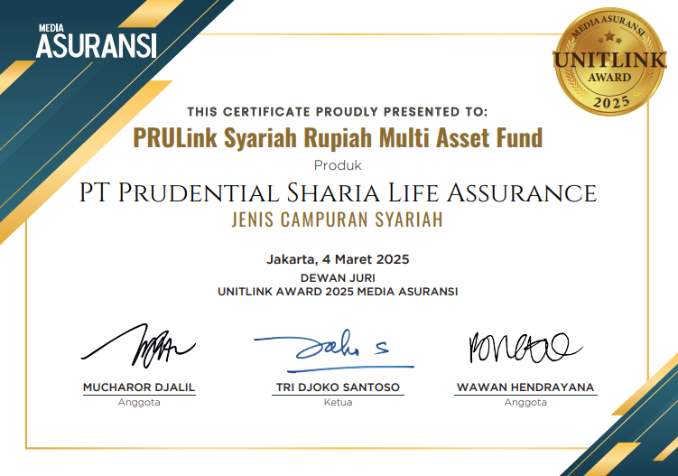Prudential Syariah kembali meraih pengakuan atas kinerja unggul produk-produk syariah dengan memenangkan Unitlink Award 2025 dari Media Asuransi. Penghargaan ini menegaskan komitmen Prudential Syariah dalam menyediakan solusi investasi berbasis syariah yang inovatif dan berdaya saing tinggi.